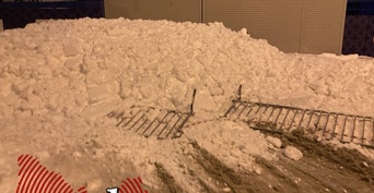 В Оренбурге прохожего едва не накрыло снежной массой, рухнувшей с крыши стадиона