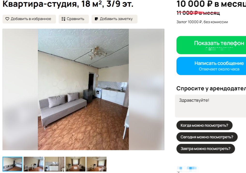 Аренда обойдется в 7 000 рублей в месяц, коммунальные услуги и интернет уже включены в эту сумму. В квартире есть необходимая техника и мебель, но действуют строгие правила: нельзя с детьми и животными, а также запрещено курить. Залог при заселении - 8 000 рублей.