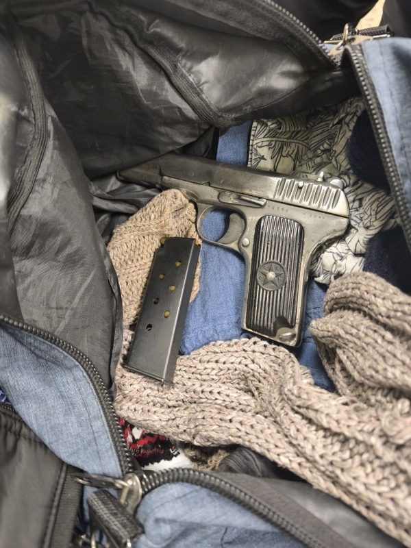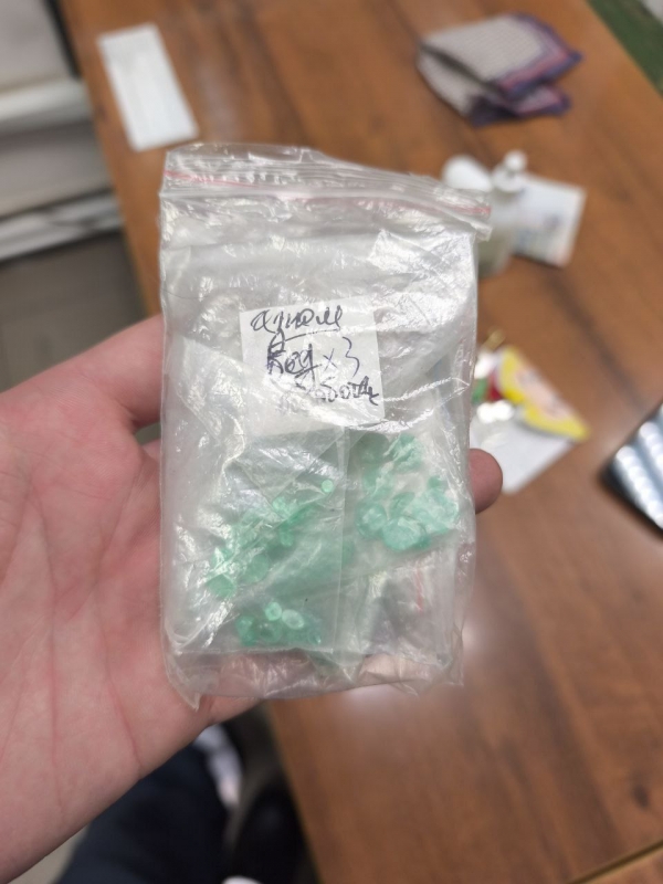 В личных вещах мужчины сотрудники полиции нашли боевой пистолет ТТ с патронами, штык-нож, наркотическое вещество растительного происхождения и несколько зелёных и полупрозрачных камней, внешне напоминающих изумруды. В настоящее время подлинность минералов устанавливает экспертиза.
