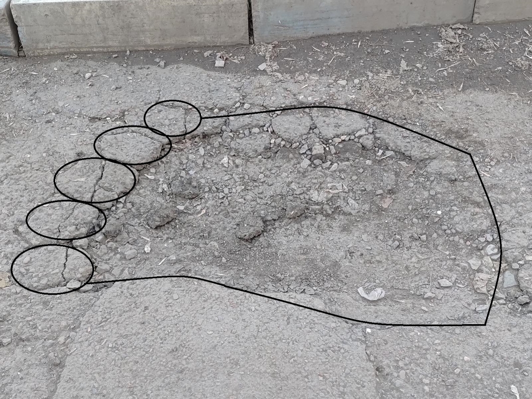 Кстати, если приглядеться, на фото можно увидеть следы сказочного великана, на которого вполне можно было бы списать разрушения полотна.