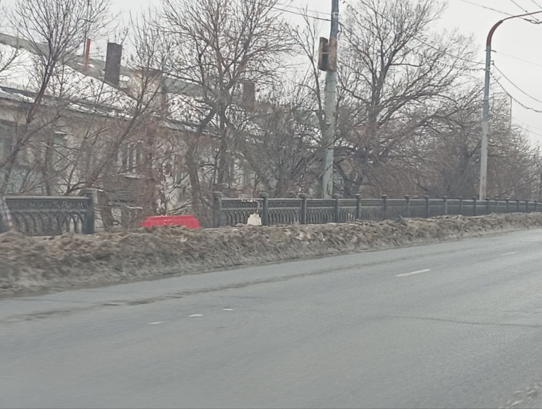 Подобная картина наблюдается и на мосту на улице Цвиллинга в Промышленном районе, где также не хватает пролета ограждения.