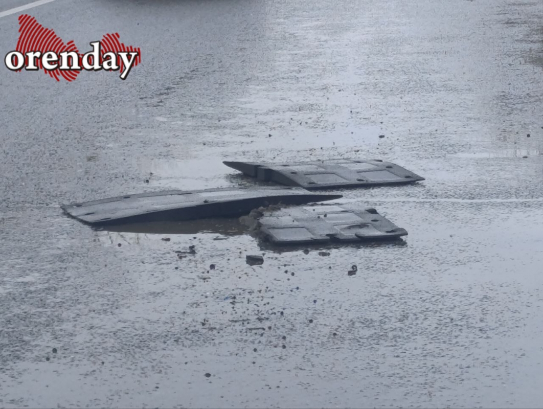 Части искусственной неровности разлетелись по проезжей части, вынуждая автомобилистов маневрировать не только между лужами и ямами, но и обломками дорожного элемента.