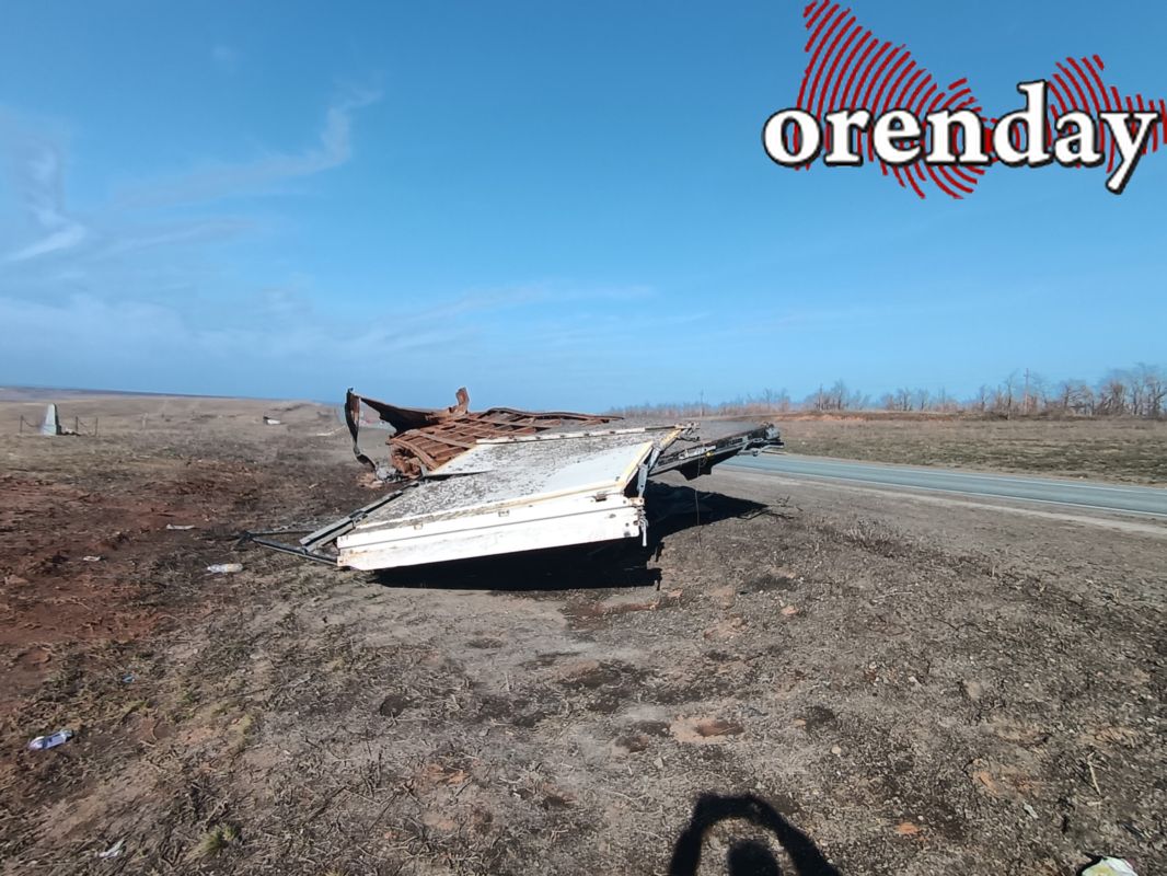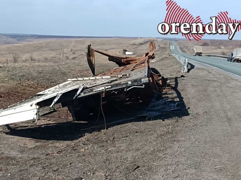 Последствия аварии не убраны до сих пор, хотя прошло уже более двух месяцев. На обочине остаются крупные фрагменты сгоревшего прицепа, искореженный металл и множество мелких обломков.