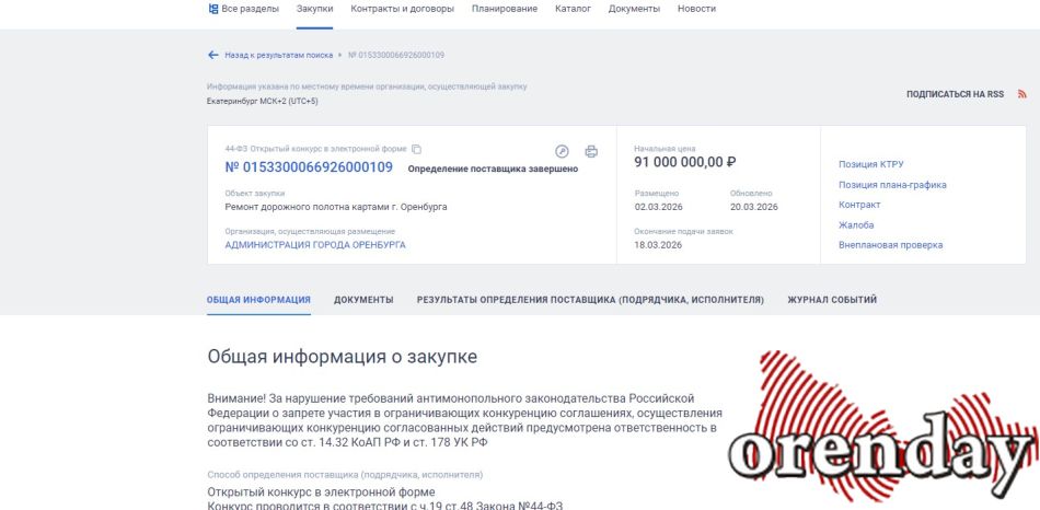 Ремонт дорожного полотна картами обойдётся бюджету в 91 000 000 рублей. Работу выполнит АО «Оренбургремдорстрой». Окончание работ по контракту – 31 ноября 2026 года. Точное расположение дорог не указано, но отмечено, что это дороги общего пользования.