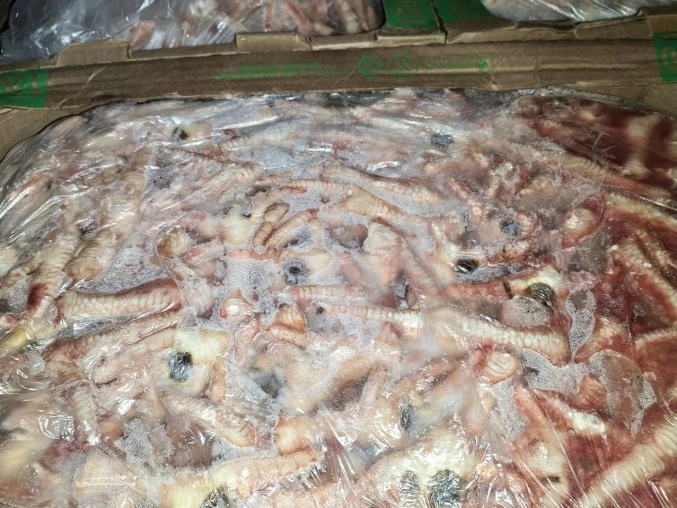 При досмотре продукции было выявлено, что отправитель не включён в реестр Таможенного союза. Кроме того, у перевозчика не оказалось ветеринарных сопроводительных документов, которые бы подтвердили качество и безопасность куриных лап. Также специалисты установили, что упаковка с грузом обезличена - прозрачные пакеты были без маркировки, а коробки с продукцией имели следы перемаркировки.