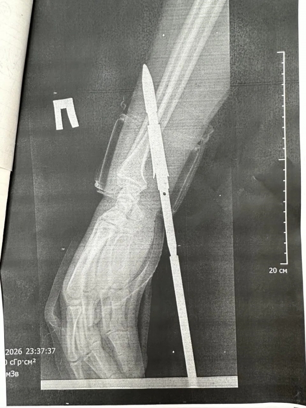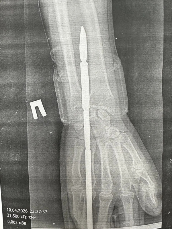В ГАУЗ «ГБ» г. Орска рассказали, что гарпун с двумя зубцами прошёл между костями, не задев их.