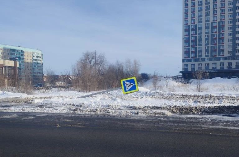 В Оренбурге зимой во время расчистки снега нередко получают повреждения дорожные знаки и ограждения. И, как правило, с восстановлением никто не спешит.