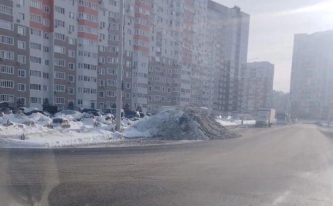 И кучи уберите, пожалуйста! Они занимают правую полосу при выезде со двора! Чтобы выехать со двора, приходится выезжать на проезжую часть, чтобы пропустить автомобили, проезжающие по главной.