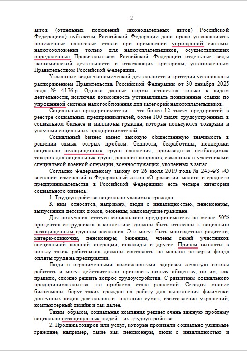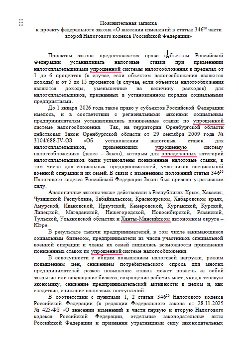Как указано в пояснительной записке до 1 января 2026 года пониженные ставки для социальных предпринимателей применялись в Оренбургской области, в Республиках Крым, Хакасия, Чувашской Республике – Чувашии, Забайкальском, Красноярском, Хабаровском краях, Амурской, Ивановской, Иркутской, Кемеровской, Курганской, Курской, Липецкой, Магаданской, Нижегородской, Новосибирской, Рязанской, Тульской, Ульяновской областях и Ханты-Мансийском автономном округе – Югре.