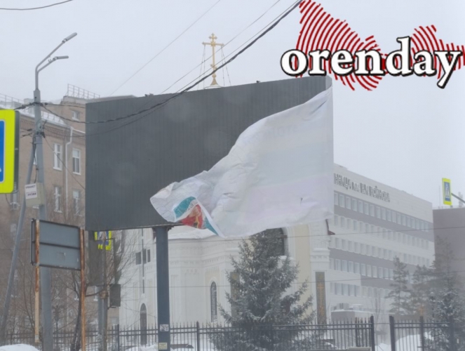 Ветер срывает рекламные плакаты.