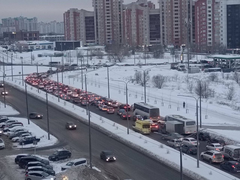 В утренние и вечерние часы на кольцевой развязке проезда Северного и ул. Салмышской водители вынуждены простаивать — пробка растягивается в сторону Загородного шоссе.