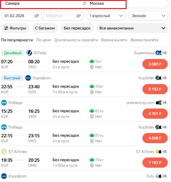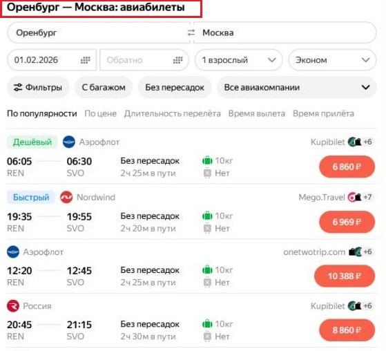 Орчанам не повезло еще больше. Билет на рейс Орск-Москва стоит 8665 рублей, с багажом – 11414 рублей.