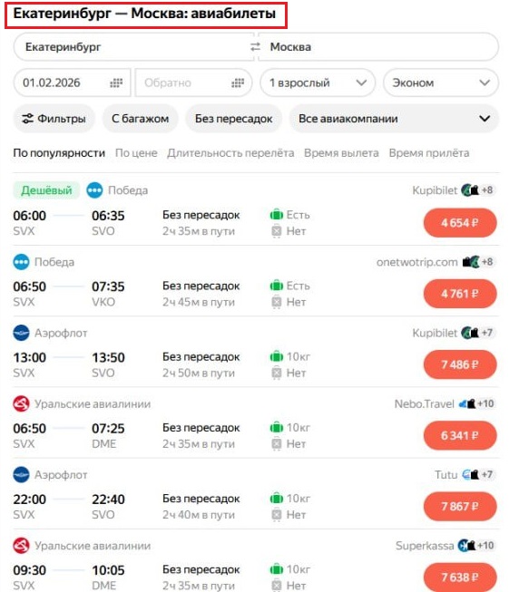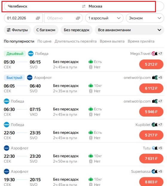 Екатеринбуржцы платят за перелет в Москву 4654 рубля, челябинцы – 5212 рублей.