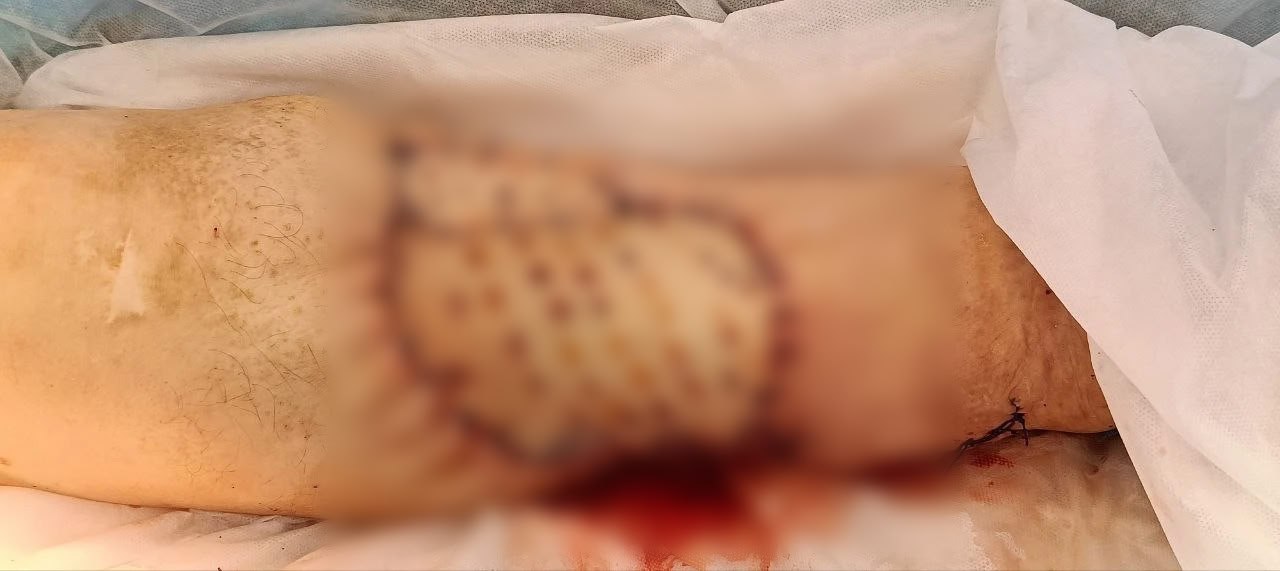 Врачи приняли решение об операции. Хирурги полностью удалили опухоль в пределах здоровых тканей, а затем провели кожную пластику, чтобы закрыть образовавшийся дефект.