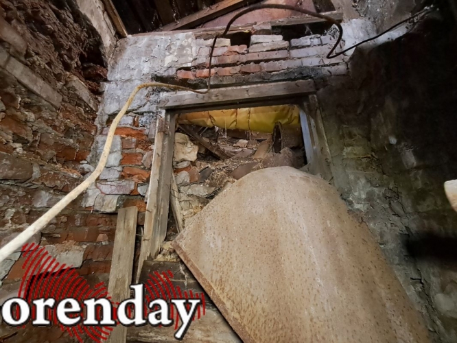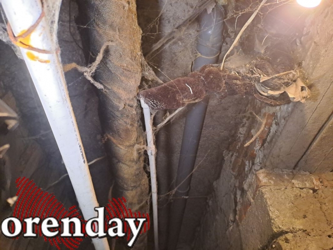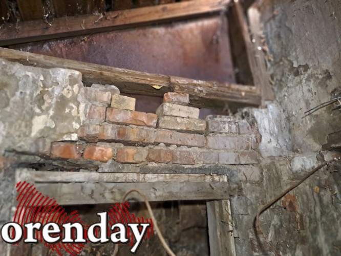 Но самый ужас творится в подвале: вход завален рухнувшими кирпичами, трубы канализации и отопления съедены коррозией настолько, что с них буквально сыплется труха. Весь дом держится на двух бетонных колоннах, которые пошли трещинами.