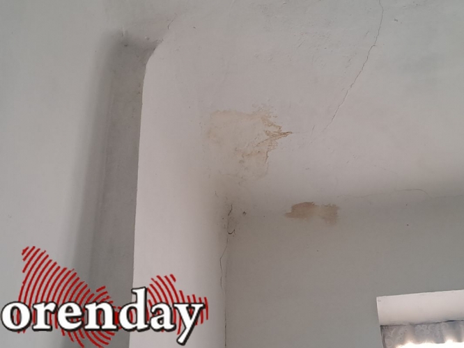 Фасад осыпается, обнажая гнилой кирпич. В стенах зияют трещины, одна из которых вертикально рассекает дом, создавая впечатление, что здание может развалиться на две части. Над одним из подъездов прямо на голой проводке, свисающей с крыши, скапливается вода.