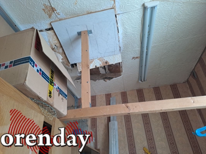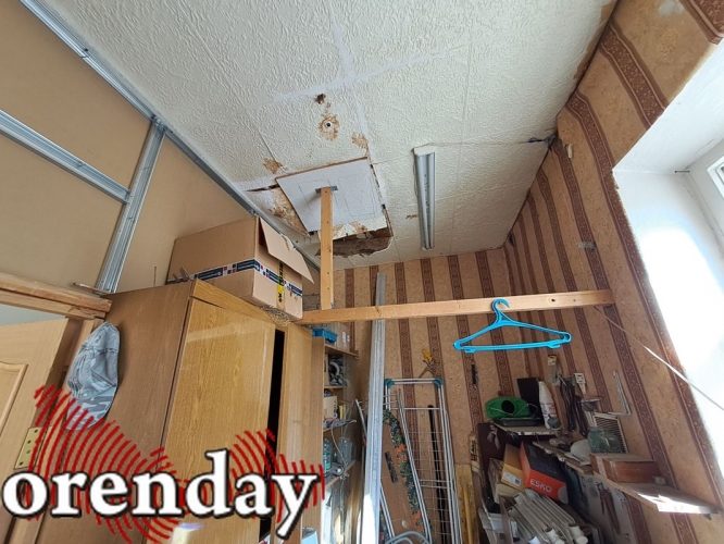 На втором этаже ситуация не лучше. Потолок в одной из квартир уже обвалился, и теперь на кухне висят остатки, грозящие рухнуть на голову инвалида, который там проживает. В другой квартире жильцы самостоятельно соорудили подпорки, чтобы перекрытия не обрушились им на голову.