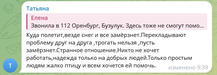 Одинокого лебедя на реке Сакмарке заметили еще в начале января. И уже тогда начали поднимать вопрос о помощи ей. Просто так птицу не заберешь на зиму. И спасатели, видимо, здесь бессильны.