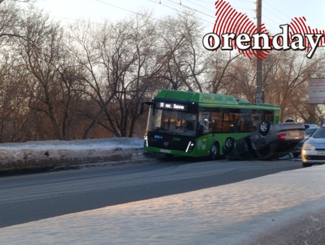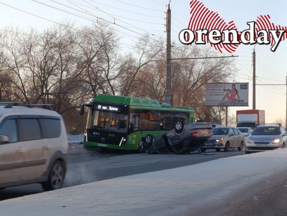 В результате ДТП один из автомобилей опрокинулся на крышу.