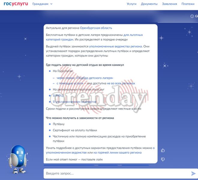 - взаимодействие с лагерем в части бронирования и оплаты путевки, в том числе с использованием полученной помощи от государства.