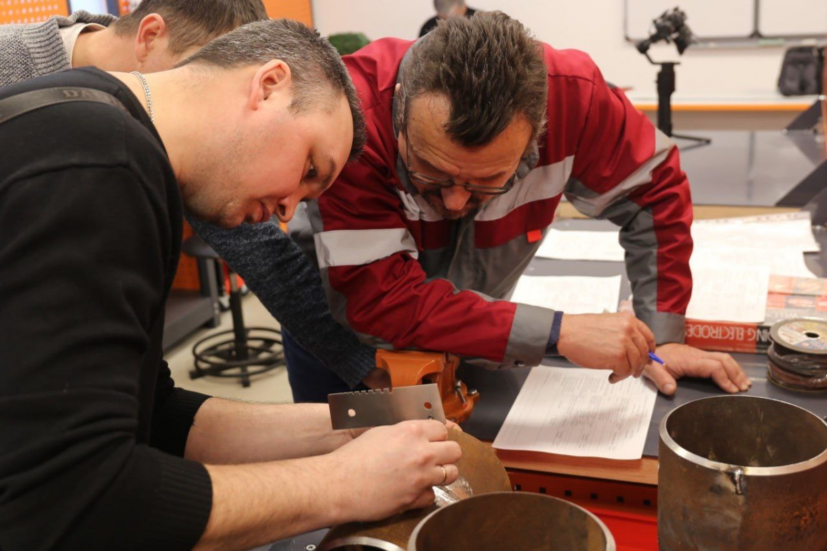 Программа мероприятия включала тестирование по предметам профессионального блока «Оборудование и технология сварки и резки металла», «Охрана труда и промышленной безопасности», «Материаловедение» и сварку неповоротного стыка трубы диаметром 159 мм.