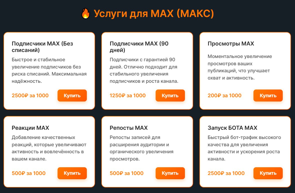 Проблема в том, что сегодня эти цифры ничего не гарантируют. В открытом доступе существуют десятки сервисов, предлагающих накрутку подписчиков, и многие из них уже адаптировались под работу с MAX. Рыночная цена одного бота колеблется в районе 2,5-4 рублей. Несложная арифметика показывает: тысяча подписчиков обходится в сумму от 2500 до 4000 рублей.
