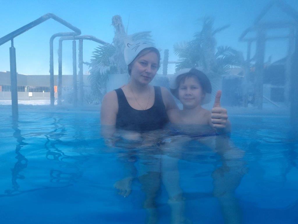 Сорок человек – в основном, родители с детьми – провели субботний день в оздоровительных процедурах и развлечениях на воде. В течение четырех часов отдыхающие посещали разнообразные сауны, бассейны, в том числе под открытым небом, спа-, спорт- и фудзоны, были участниками развлекательных программ.