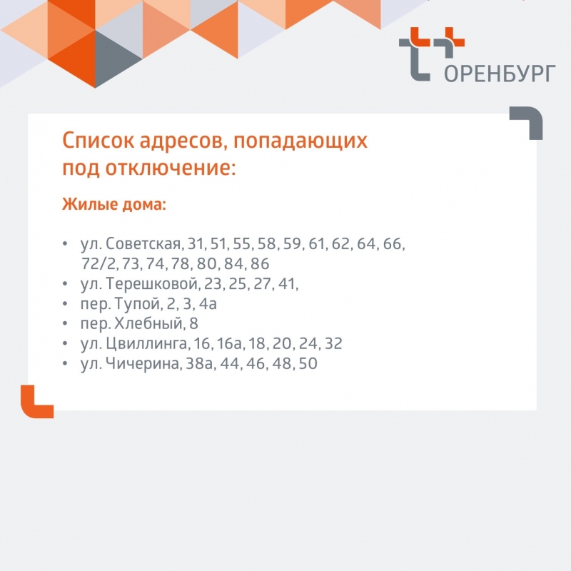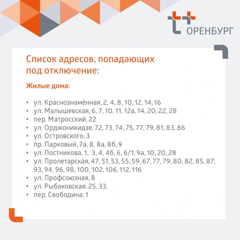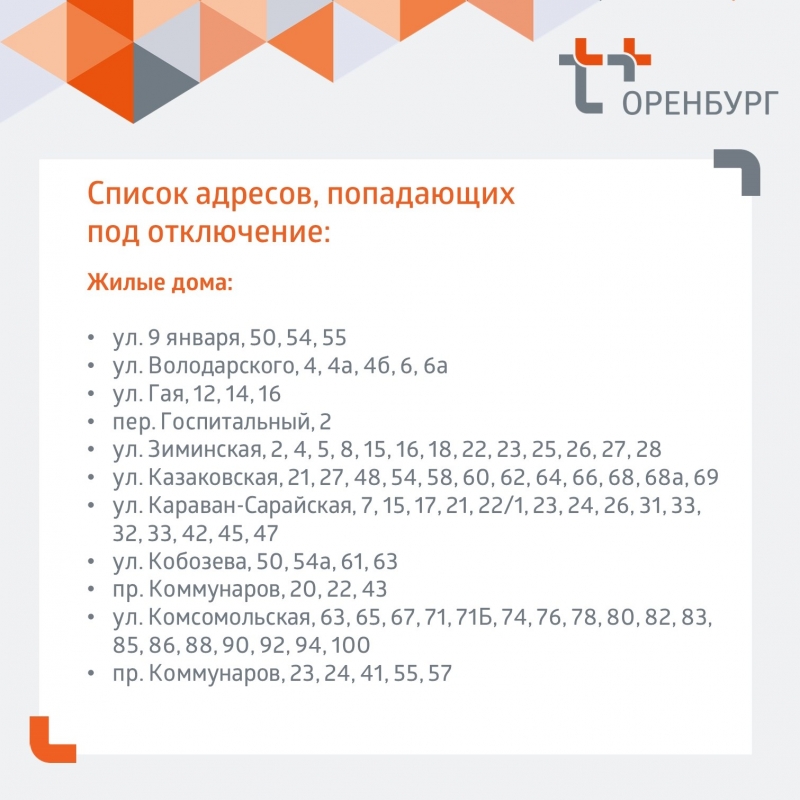 В центральном районе Оренбурга идут ремонтные работы на ненадежном участке водопроводной сети в районе улицы Корецкой. Это привело к отключению горячей воды и отопления в десятках домов. Ресурсоснабжающая организация подготовила карточки со списками адресов, попавших под ограничения. Обещают, что к концу суток работы будут завершены.