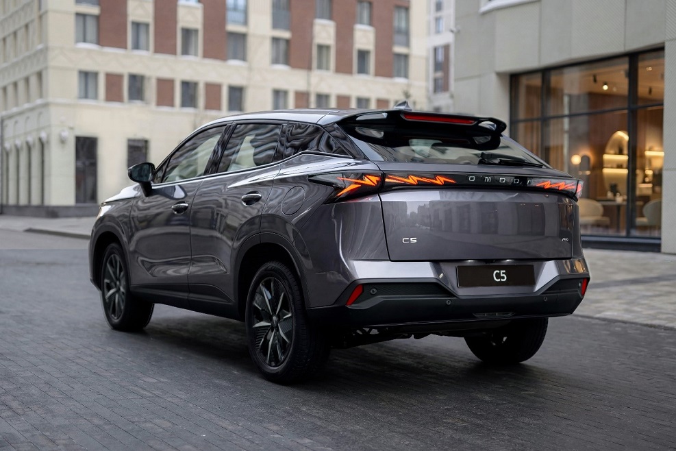 Светодиодная оптика выполнена в двухъярусной компоновке, стилистически напоминающей флагманский OMODA C7. Задняя часть также претерпела изменения: фонари получили динамичный рисунок в виде «молний» как у C7, а номерной знак был перенесен ниже, в зону бампера.