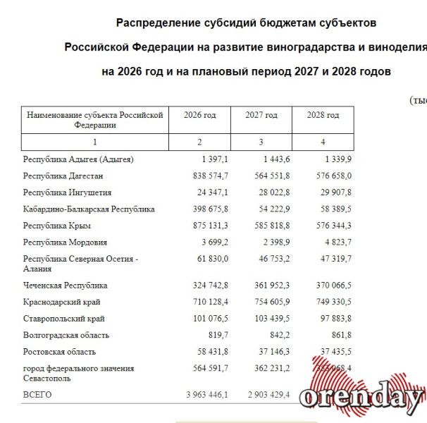 Больше всего денежных средств в первый год работы федерального проекта по поддержке виноградарства получила республика Крым, следом идут Краснодарский край и Дагестан. В 2022 году при планировании распределения субсидий предполагалась поддержка Оренбуржья. В 2023 и 2024 годах планировали выделить средства в размере 209 тысяч рублей и 303 тысячи рублей соответственно, но в 2023 году субсидии не выделили, а запланировали на 2024 и 2025 годы суммы – 233 000 рублей и 283 000 рублей соответственно. Но и тут что-что не срослось. С 2024 года Оренбуржье в списках субсидируемых регионов не присутствует. Собственно, это и понятно, поскольку наш регион не входит в официальный список виноградо-винодельческих зон РФ, а их, по состоянию на 2025 год, насчитывается 17.