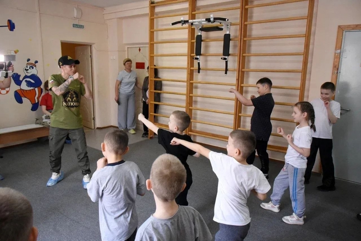 После беседы спортсменка провела для детей мастер-класс и показала запись своего чемпионского боя.