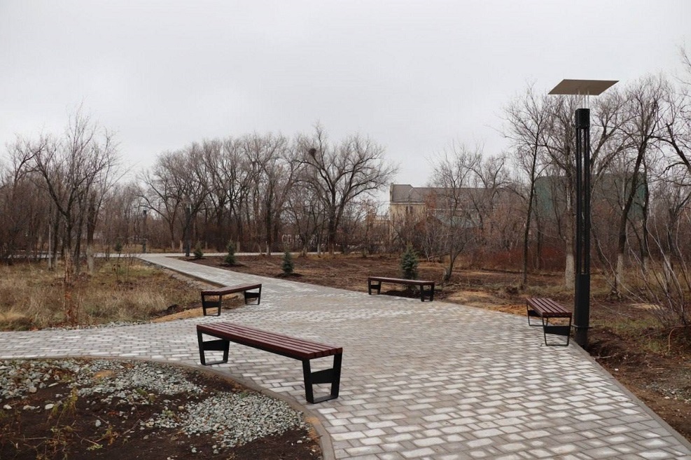 Работы велись в несколько этапов: обустроены прогулочные дорожки с тротуарной плиткой, созданы места для отдыха со скамейками, обновлена система уличного освещения, выполнено озеленение.