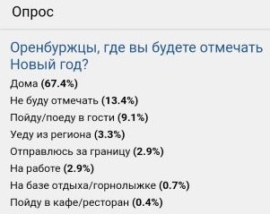 Более девяти процентов респондентов встретили Новый год в гостях. Более трех процентов уехали на праздник за пределы региона, чуть менее трех процентов отправились за границу, несмотря на пандемию. Такому же числу наших читателей не повезло, они работали в новогоднюю ночь. 0,7 процента отвечающих на опрос посчастливилось в праздник отдохнуть на базе отдыха либо горнолыжке. Всего 0,4 процента респондентов выбрали местом встречи Нового года кафе либо ресторан.