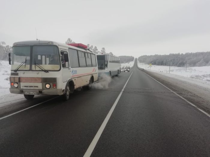 В полицию поступило сообщение о возгорании моторного двигателя пассажирского автобуса, следовавшего по маршруту новогоднего тура "Самара-Уфа-Самара". Водитель не сразу заметил, что огонь быстро распространяется по днищу автобуса и продолжал ехать по оживленной трассе.