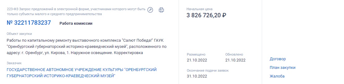 После уже проделанной в парке огромной работы благоустроители вспомнили о наружном освещении памятного места. Завершен приём заявок, вот-вот будет определён исполнитель. Заказчиком работ, максимальная стоимость которых определена в 3 826 726,20 рублей, выступает ГАУК «Оренбургский губернаторский историко-краеведческий музей».
