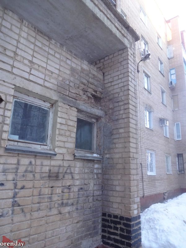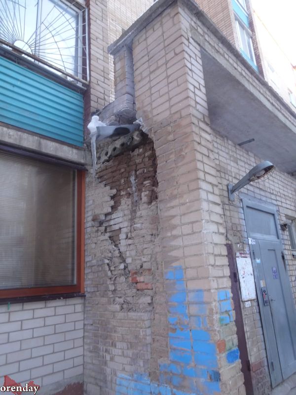 Жильцы пятиэтажного проблемного дома рассказали Orenday, что в подвале общежития, в котором 69 квартир, текут трубы с горячей водой, а это подмывает фундамент и может привести к разрушению несущих стен. Кроме того, пар от протечек выходит наружу через многочисленные щели, отчего происходит намокание и разрушение кирпича.
