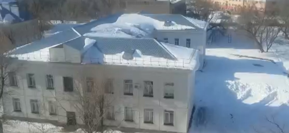 Но и на этом теоретические проблемы не закончились. Оказалось, что с новой крыши школы №47 никто и не думает убирать снег, видимо, ожидая, пока он растает сам.