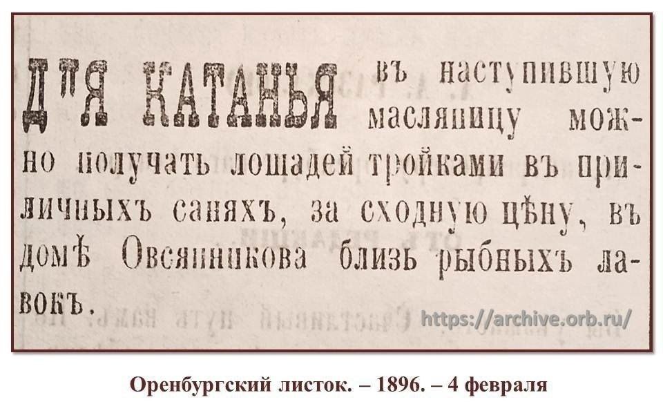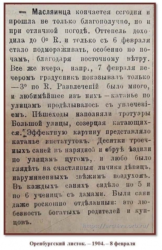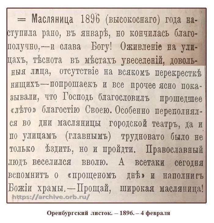 На страницах "Оренбургского листка", датированных концом XIX - началом XX вв., можно найти довольно красочные описания празднования Масленицы.