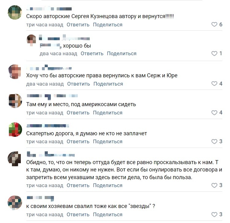 А вот почитатели его творчества, прекрасно осведомленные о всех тонкостях взаимоотношений между Сергеем Кузнецовым, Юрием Шатуновым и Андреем Разиным, попросту взорвались. В комментариях под постом нет ни единого в поддержку уехавшего из России Разина. Многие высказывают надежду на то, что авторские права на песни, которые так дороги миллионам фанатов "Ласкового мая", спустя десятилетия и судебные эпопеи вернутся к тем, кто ими и должен обладать - Кузнецову и Шатунову.