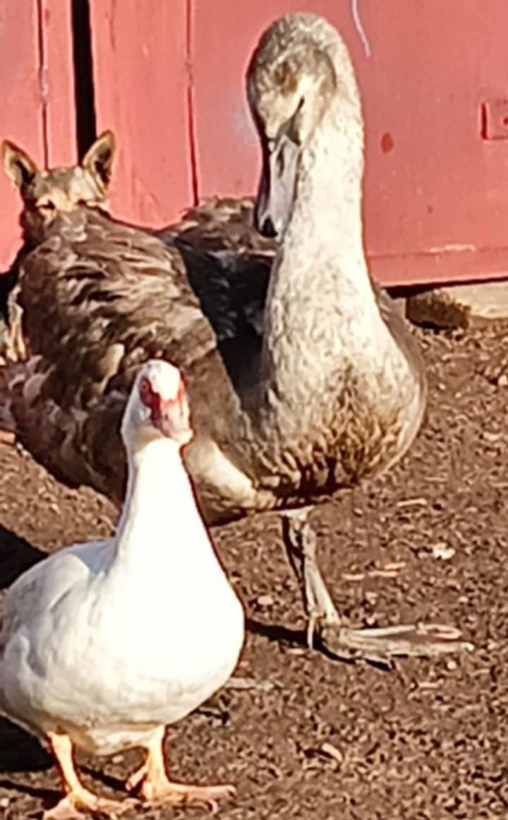 «Он был слабый, не мог летать. Сейчас он полностью здоров, завел новых друзей среди домашней птицы. А еще у него появилась подруга – индоутка. Он от нее ни на шаг не отходит. Вот такая любовь».
