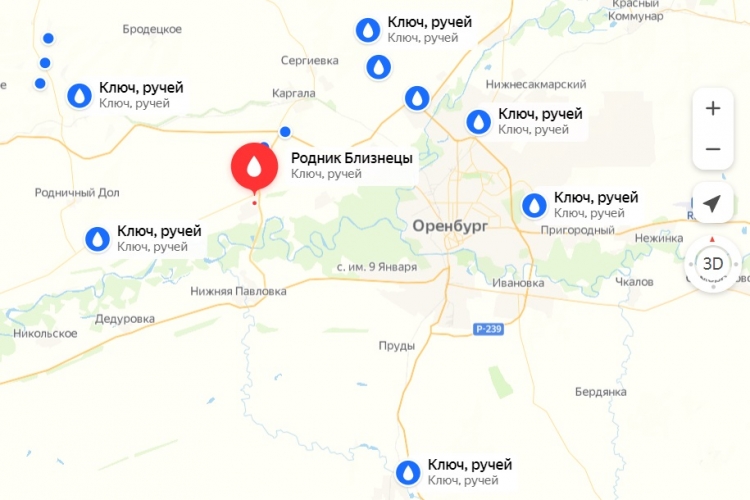 Впрочем, онлайн карты любезно предлагают всем желающим едва не целую сеть родников, расположенных поблизости от Оренбурга. Некоторые из них имеют названия: например, родник «Близнецы» у села Черноречье Оренбургского района. Дорога к нему после выезда из города занимает около двадцати минут. Однако, повернуть с трассы, следуя указаниям навигатора, физически некуда. Хотя нет: после крутого спуска с обочины, который не всякий внедорожник одолеет, в траве просматривается колея…