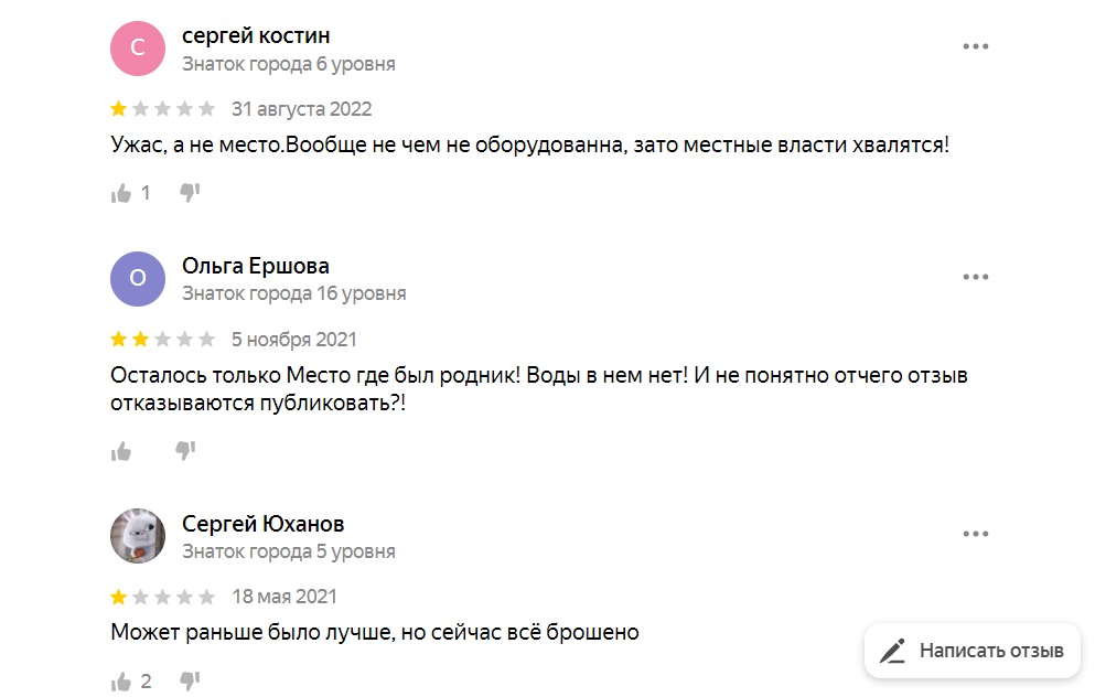 Упрекать чиновников в нынешнем состоянии родника, наверное, было бы не слишком справедливо: у них и других забот хватает, тогда как туристы относятся к уже созданному, мягко выражаясь, не слишком бережно. И все же отметим – тогда, как в этом случае, уже имеется подаренной природой актив c бесплатной информационной поддержкой от навигационных систем, которая сама по себе стоит немалых денег, не гостеприимно встречать потенциальных гостей… перекопанной дорогой.