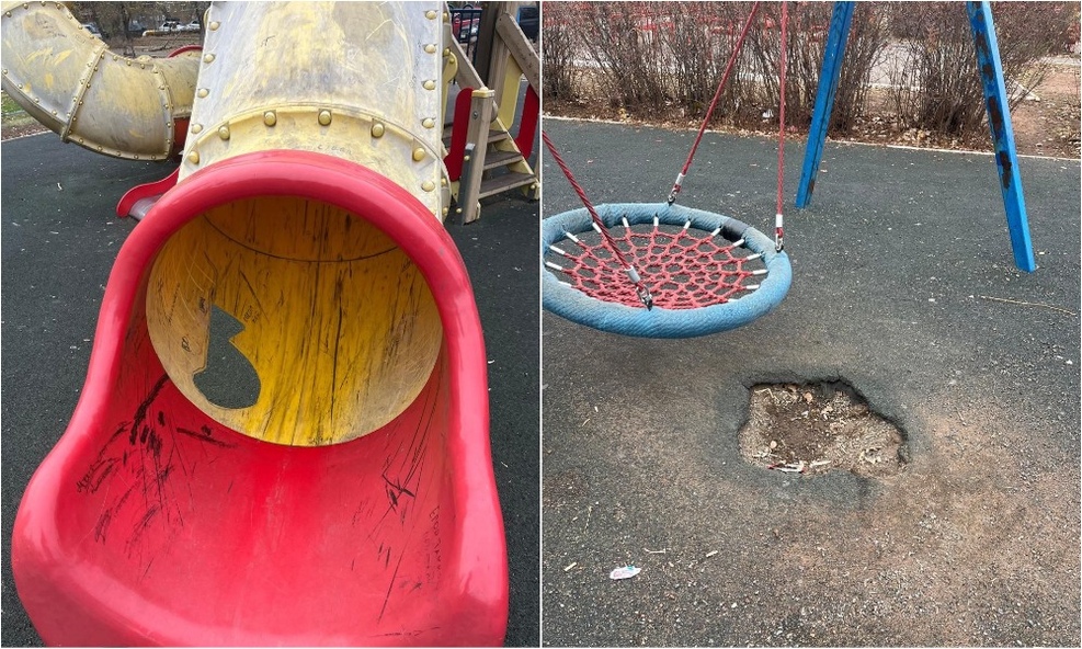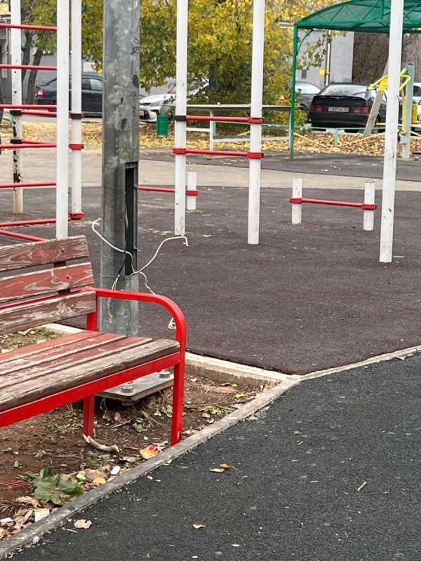 Состояние площадки отвратительное, ветки сломанные не вывозят, площадка опасна для использования, со столбов торчат провода, покрытие порвано, горки сломаны. Очень травмоопасно для детей. УК не поддерживает состояние, - рассказывают местные жители.