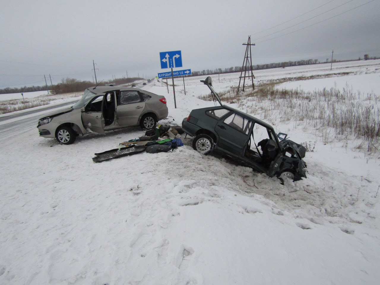 20-летняя девушка-водитель автомобиля "Лада Гранта" ехала со стороны Самары в сторону Оренбурга. Она не справилась с управлением, выехала на полосу проезжей части, предназначенную для движения встречных транспортных средств, и столкнулась с автомобилем "ВАЗ 211440", под управлением 52-летнего водителя, который ехал во встречном направлении прямо.