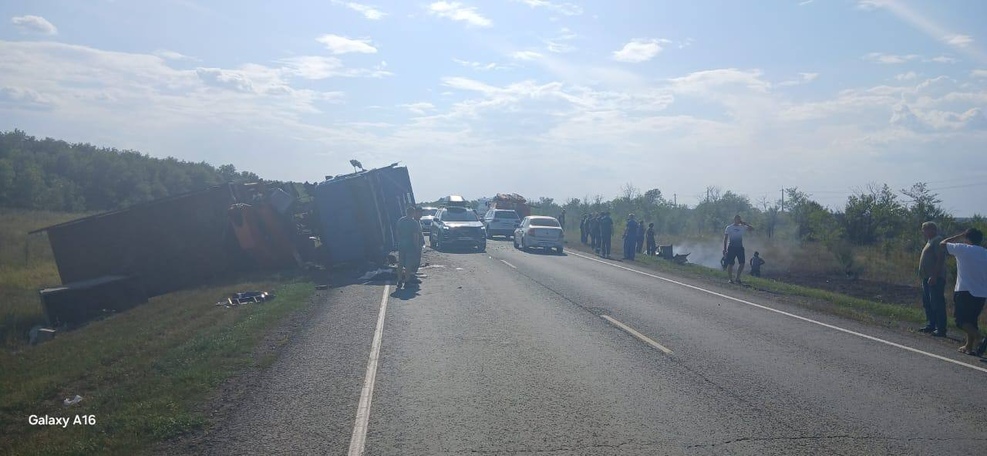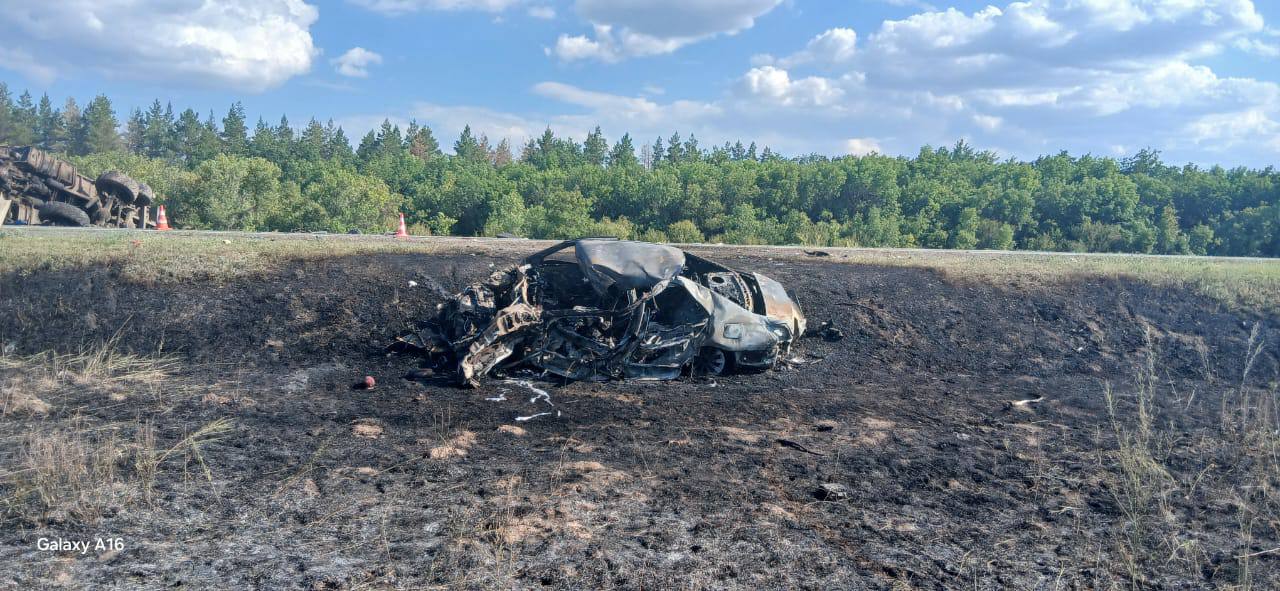 По предварительной информации УМВД, водитель "Toyota Corolla" выехал на полосу встречного движения и столкнулся с "КАМАЗом". В результате столкновения легковой автомобиль загорелся.