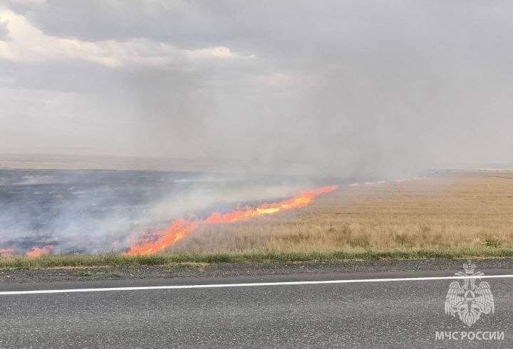 Несколько часов назад между Оренбургским районом и Соль-Илецком произошло возгорание сухой травы. Огонь быстро распространяется по территории, борьбу с ним осложняет сухая погода и порывистый ветер.