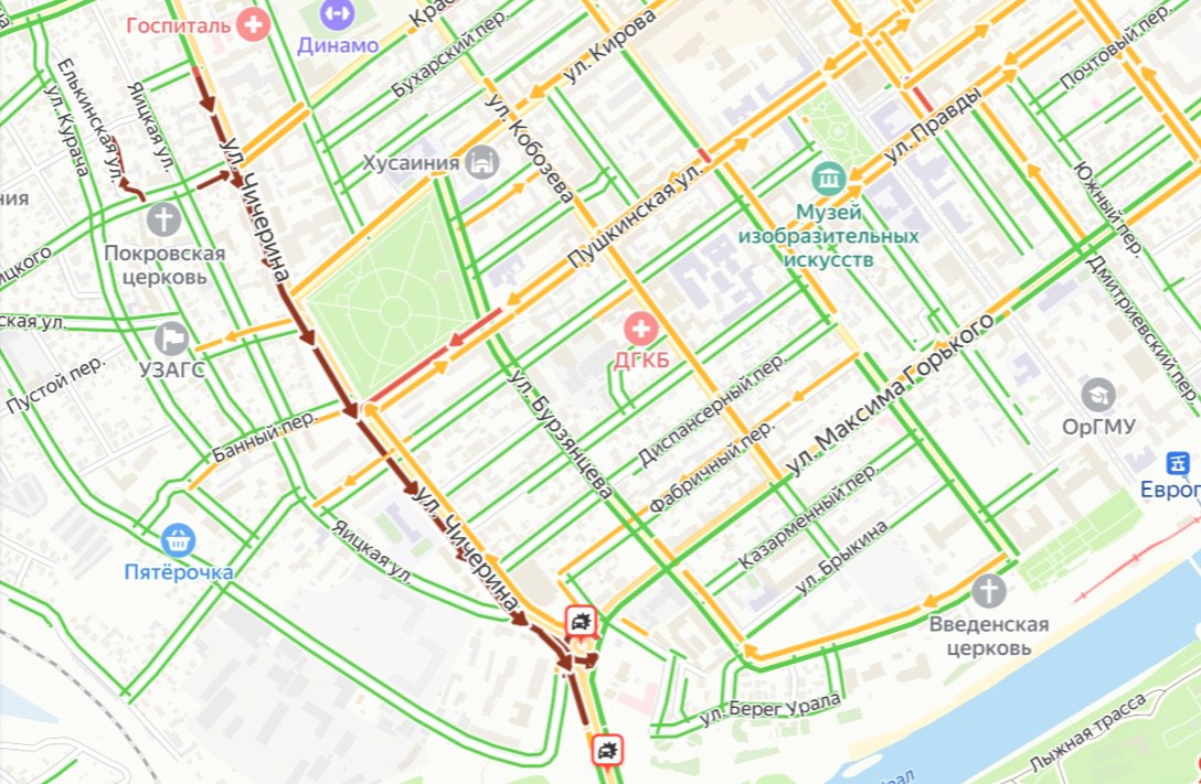 Массовое дорожно-транспортное происшествие на улице Чичерина произошло больше часа назад, столько же времени длится и пробка. Транспорт движется по пол чайной ложки в минуту.