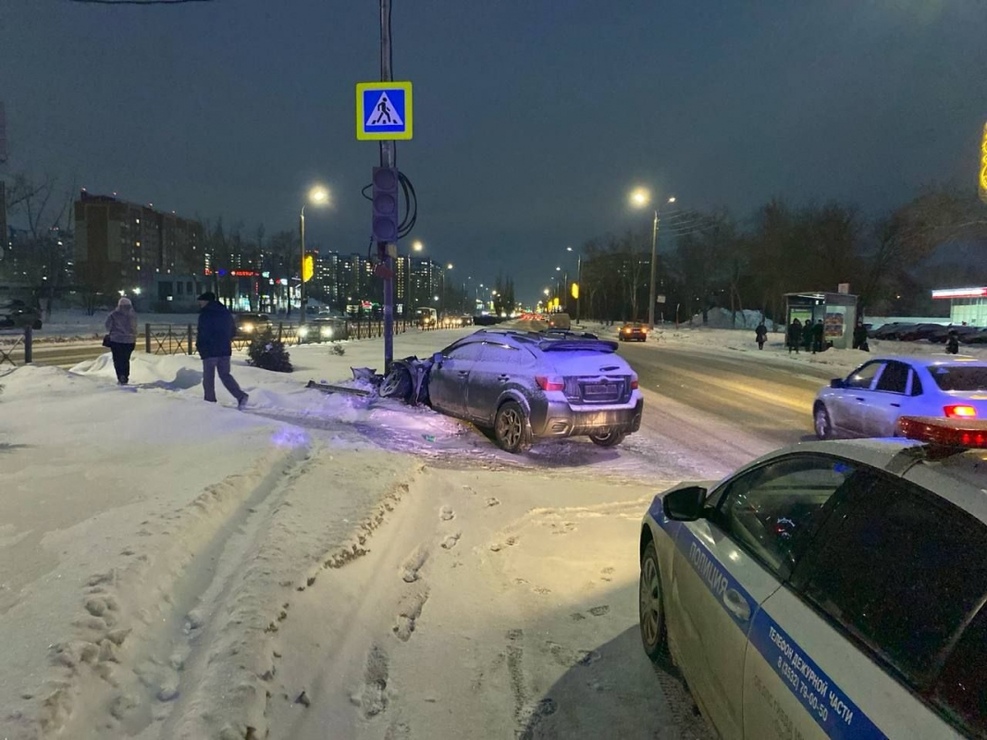 Предварительно установлено, что водитель автомобиля Subaru сбил мужчину, который переходил дорогу по нерегулируемому пешеходному переходу. После машина въехала в столб.