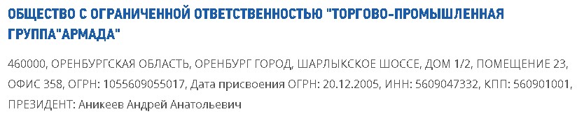 Напомним, президентом торгово-промышленной группы «Армада» является Андрей Аникеев, лицо которого с призывами ехать в «Армаду» оренбуржцы могли лицезреть на каждом углу в ходе предвыборной компании в Госдуму. Она прошла успешно: сейчас Аникеев, как и Виктор Заварзин, Олег Димов и Владимир Ильиных – представители Оренбургской области в Охотном ряду.