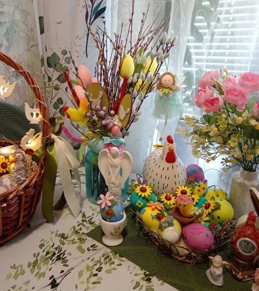 Оренбуржцы делятся в социальных сетях пасхальными натюрмортами. Здесь же веточки вербы, ангелочки, декоративные цыплята.